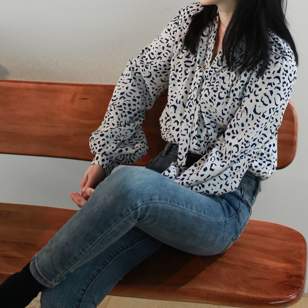 - レオパード柄Vネックシャツ (R_064)